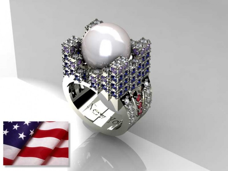 Les allusions aux couleurs du drapeau et des Tours Jumelles ne manquent pas dans cette collection. Aujourd’hui, tristement reinventée comme des fragments sur la superficie ronde du bracelet. La Statue de la Libertè entre en action en s’éxibant avec son interessante ambre en forme d’étoile qui entoure le pièdestal présent dans les précieuses boucles d’oreilles et le pendentif de ce collier qui émane la stabilité et l’indépendance de ce pays.